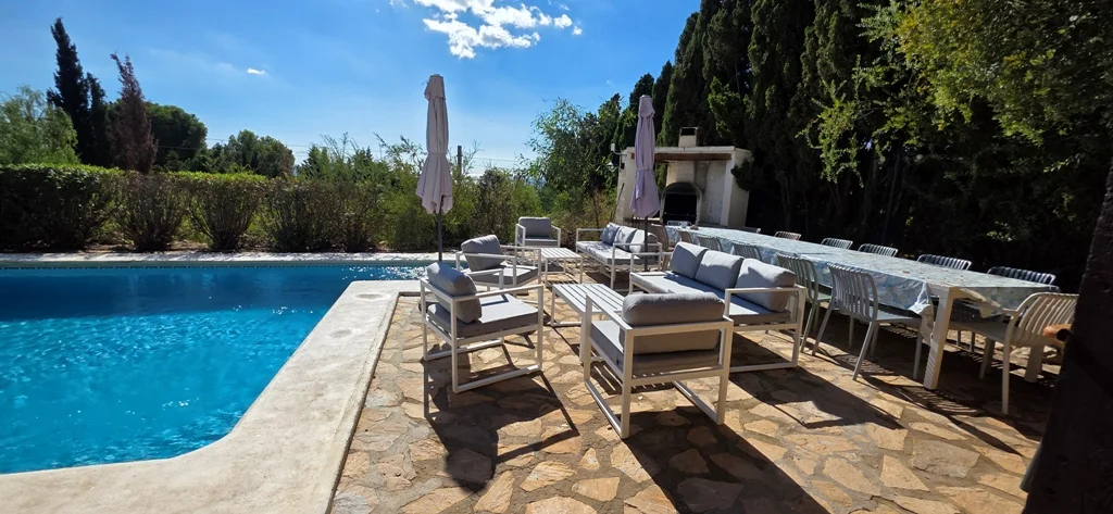 Villa Eliane is a charming, traditional Spanish-style villa, situated on a spacious 1,860 m² plot, offering plenty of space for relaxation and quality time with family and friends. The property features a heated swimming pool (10 × 5 m), a chill-out area with barbecue and bar, a large garden, sun loungers, and stunning sea views. The pool heating is available during the winter season for €220 per week (approx. 30 °C).