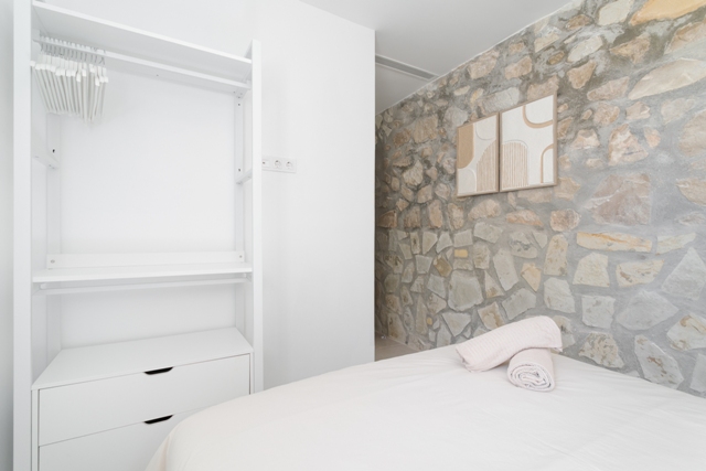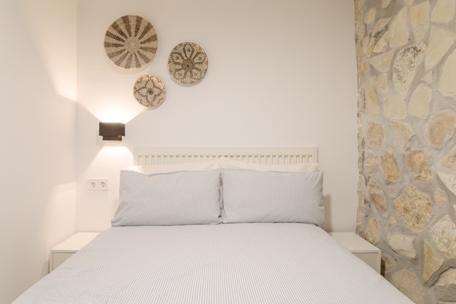 On the ground floor, you will find an additional covered terrace, an open terrace with a comfortable seating area, a spacious kitchen, a dining room, three bedrooms (Beds: 150 x 200 cm, 135 x 190 cm, 180 x 200 cm) and two bathrooms, one of them en suite. Up to two additional single beds can be provided upon request at a cost of 90€/unit, per stay.