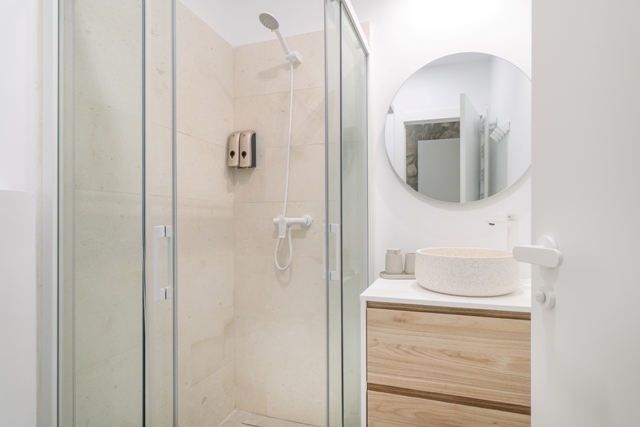 From the basement terrace, you have direct access to the swimming pool area, surrounded by sun loungers, as well as an additional bathroom. The swimming pool can be heated for an extra charge of 220€/week (approx. 30 °C). Next to the outdoor shower, there is direct access to the sea, a staircase leads effortlessly down to a small bay, ideal for swimming and snorkeling in crystal-clear waters.