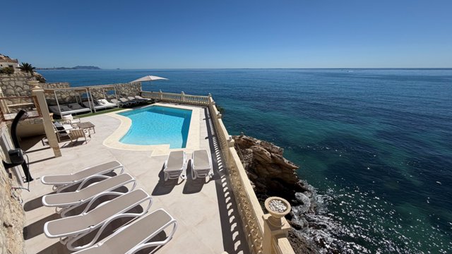 Bereits bei der Ankunft entdecken Sie diese diskrete Villa am Ende einer Sackgasse: ein Ort von besonderer Ruhe und Privatsphäre. Beim Betreten des Grundstücks offenbart sich sofort die Einzigartigkeit dieser Immobilie: eine unvergleichliche Lage direkt am Meer. Der atemberaubende Panoramablick über die Mittelmeerküste bis hin nach Benidorm und Alicante lässt sich von allen Ebenen der Villa genießen – vom Obergeschoss, Erdgeschoss sowie von den Terrassen am Pool.