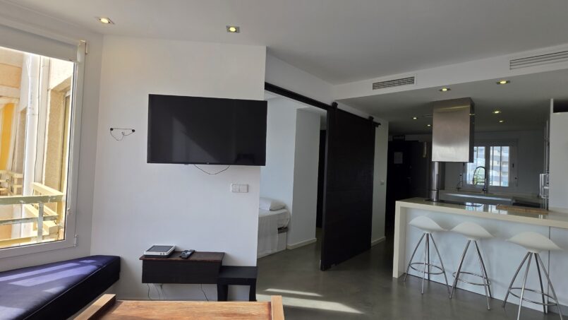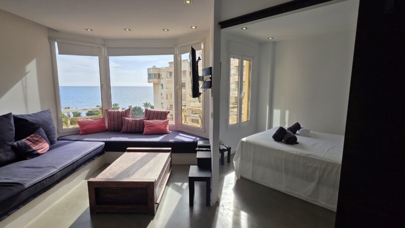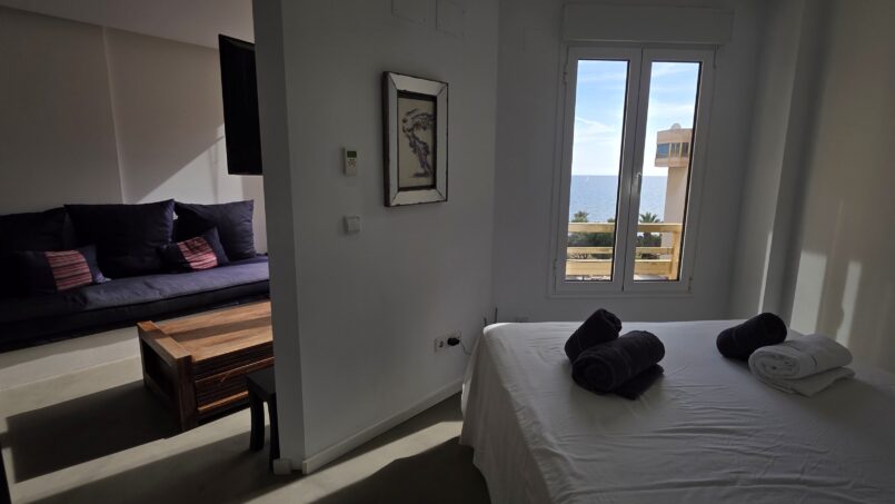 El apartamento cuenta con un dormitorio doble (cama: 150 × 180 cm), una sala de estar con cocina abierta y un sofá cama, proporcionando espacio adicional para más huéspedes. Se proporcionan toallas, ropa de cama y toallas de playa. Tronas y cunas disponibles bajo petición sin coste adicional.