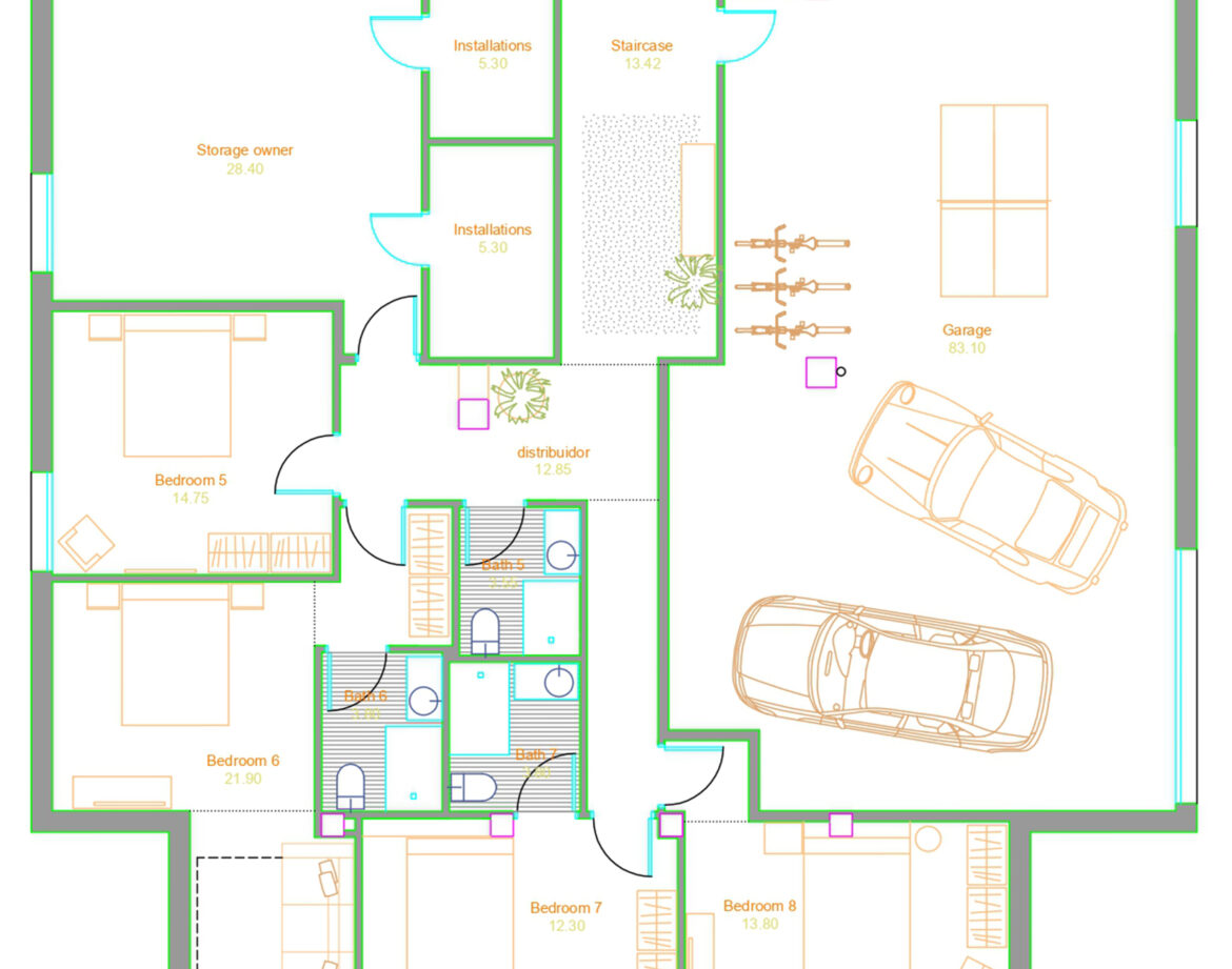 – 8 dorm., 7 baños, hasta 20 huéspedes