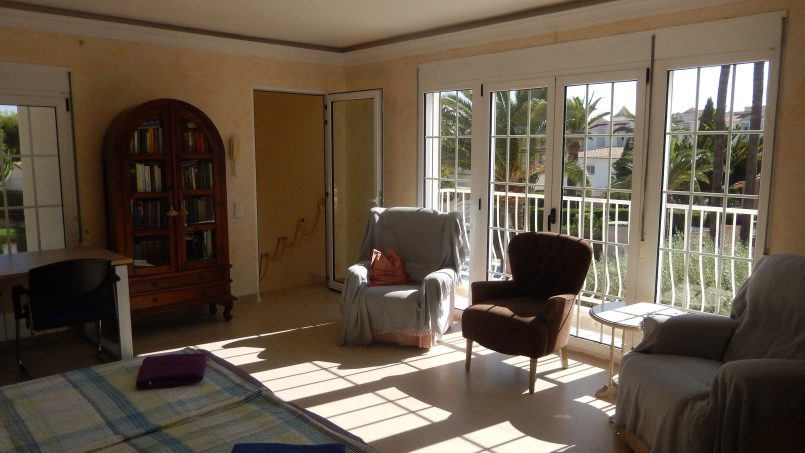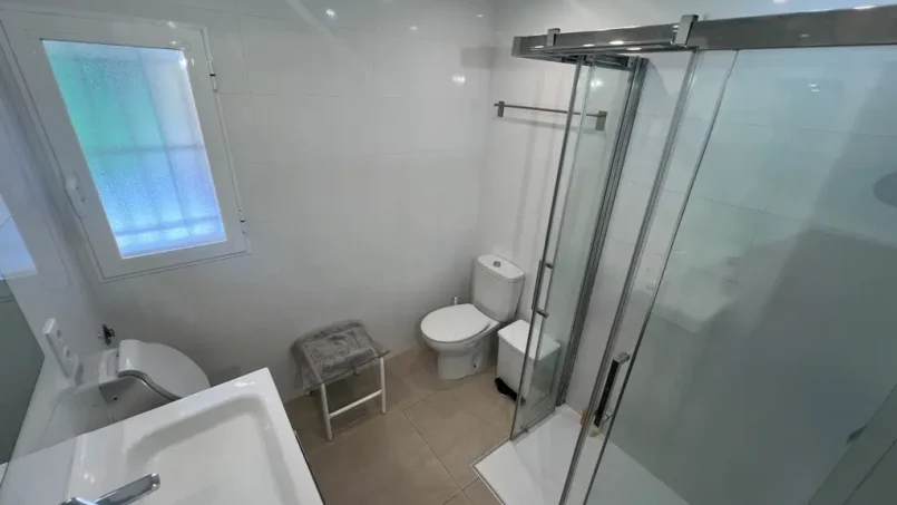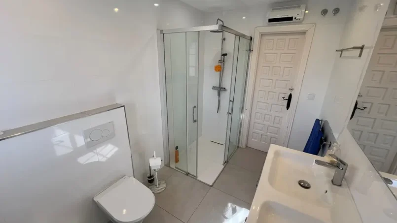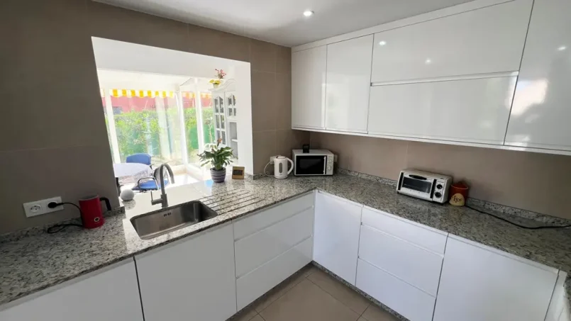 En la planta baja se encuentra la cocina con acceso directo a la terraza acristalada o al porche. Desde el amplio salón se accede directamente a la terraza cubierta o a los dos dormitorios dobles de la planta baja con baño compartido.