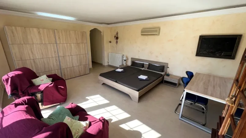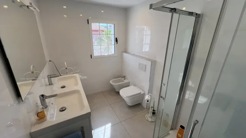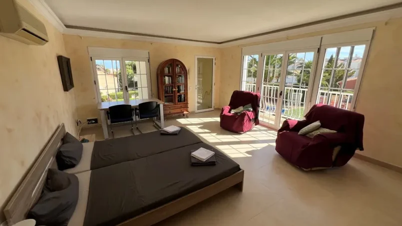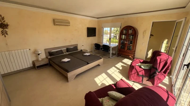 La villa ofrece 5 habitaciones dobles y 3 baños con ducha.