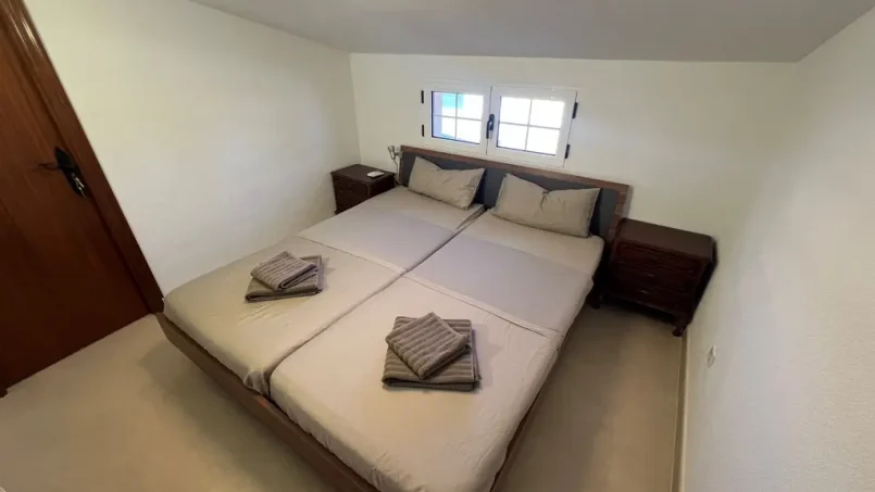 El dormitorio principal está en el primer piso. A través de este dormitorio accedemos a un baño compartido, un dormitorio con baño en suite y otro dormitorio.